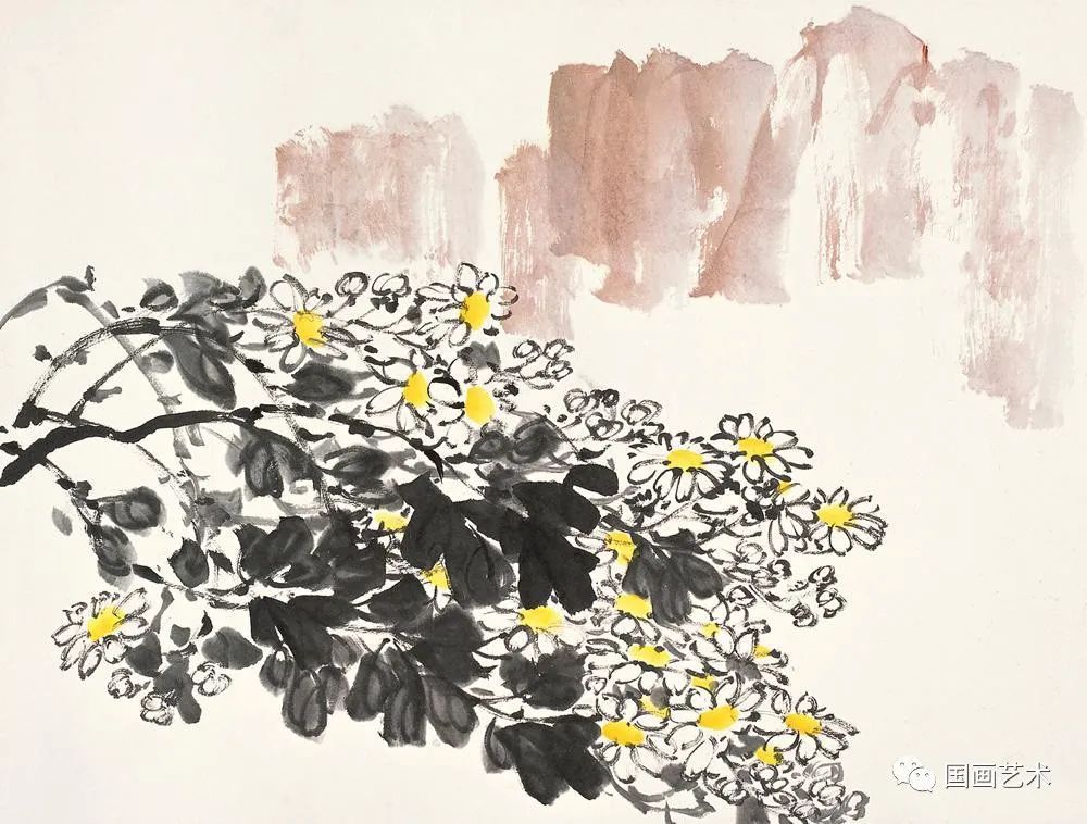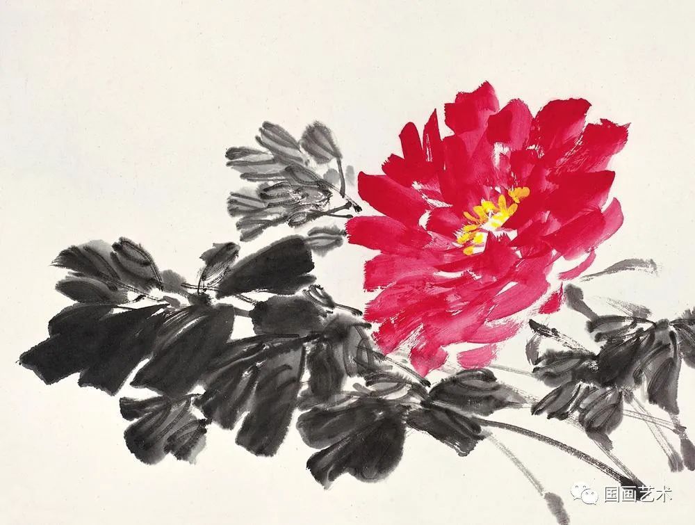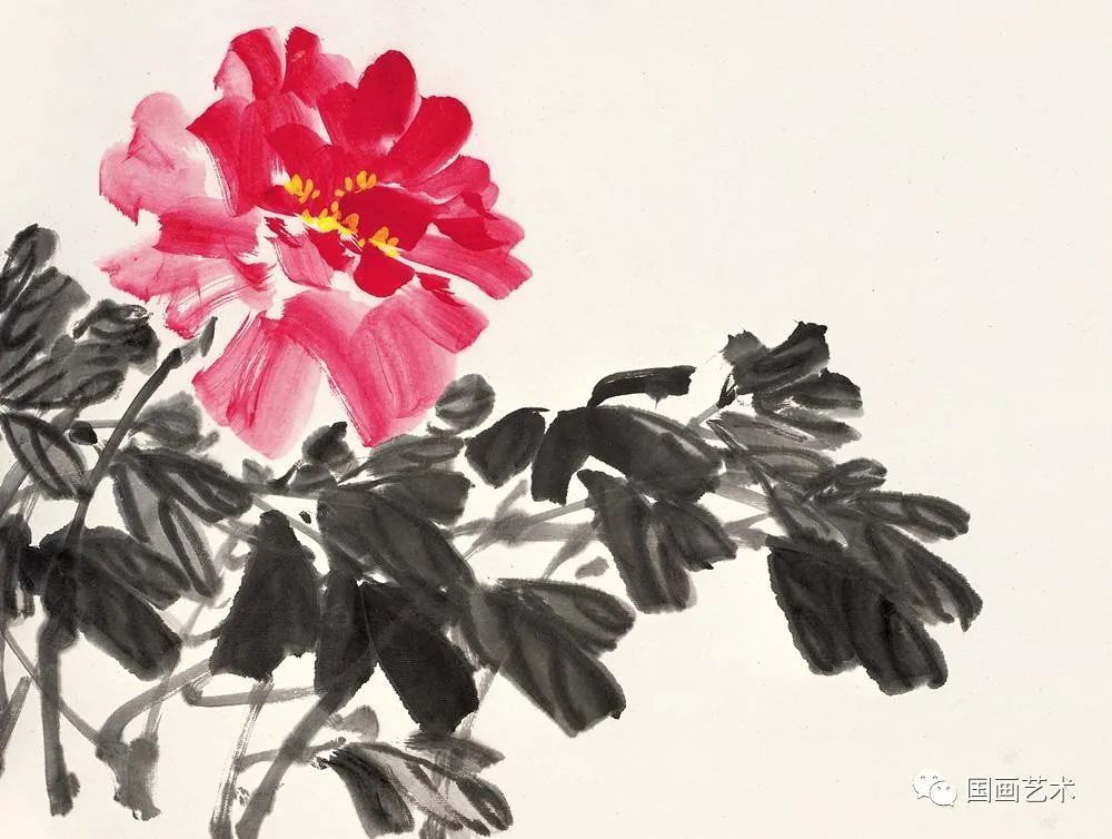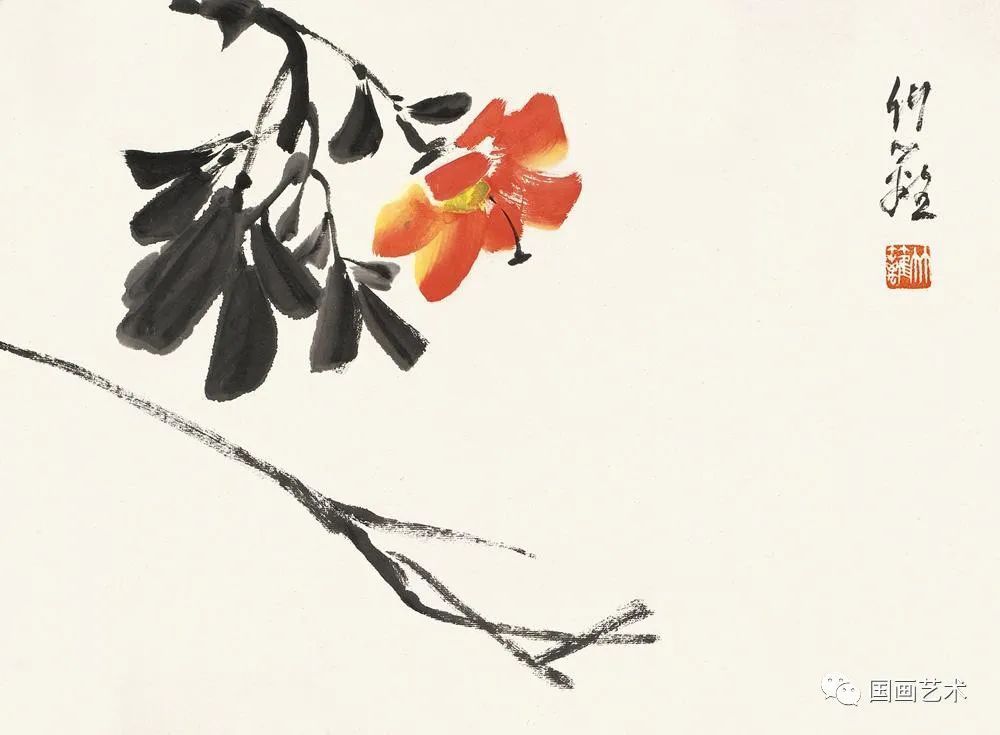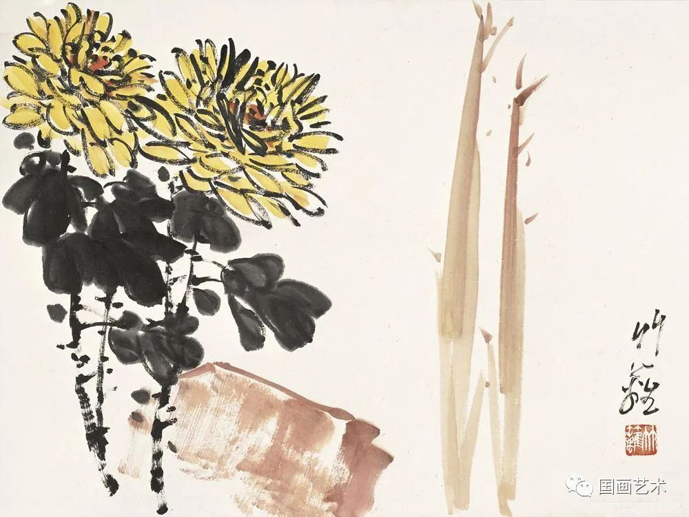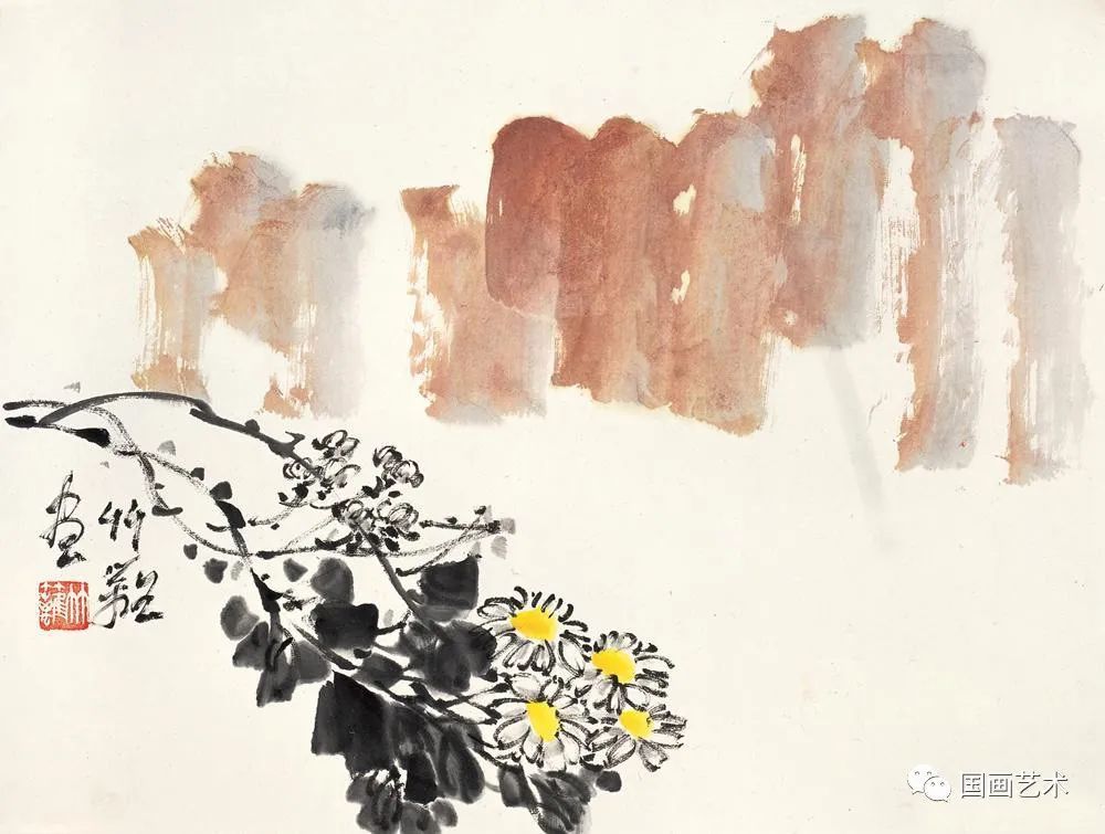 荷花是孙老又一酷爱的题材。荷花从春、夏、秋、冬各显其风采,写其自然,达到溢情于画是孙老的心意。我们看到他的荷花是:春天初荷时,鱼儿畅游;夏荷蓬勃生机,水鸟兴奋;秋荷叶黄,莲蓬累累;冬荷寓新生,清塘倒影,可谓寓诗寓情。孙老数十年画荷,风里、雨里、酷日、清晨、落日他都亲临野塘观察写生,寄于荷花无限之情。并有诗云:“十年看藕叶,八载忆潇湘。风雨催诗兴,丹青醉酒狂。”他画大写意荷花,兴酣落墨,即情挥洒,如疾风骤雨,花叶飘摇。他在用笔上以书法写荷茎,在画荷叶时又是大笔狂写,浓淡干湿淋漓尽致,处处都见笔墨精神。百开册中有荷花8帧,多是逸笔草草而写之。从构图看,多为简约,但饱含着对荷花的心意,写出了荷花出淤泥而不染的贞洁。一叶一花在画的构图中有着奇特的照应,也可谓阴阳相谐,浑然天成。