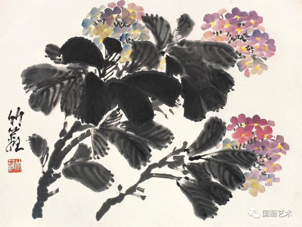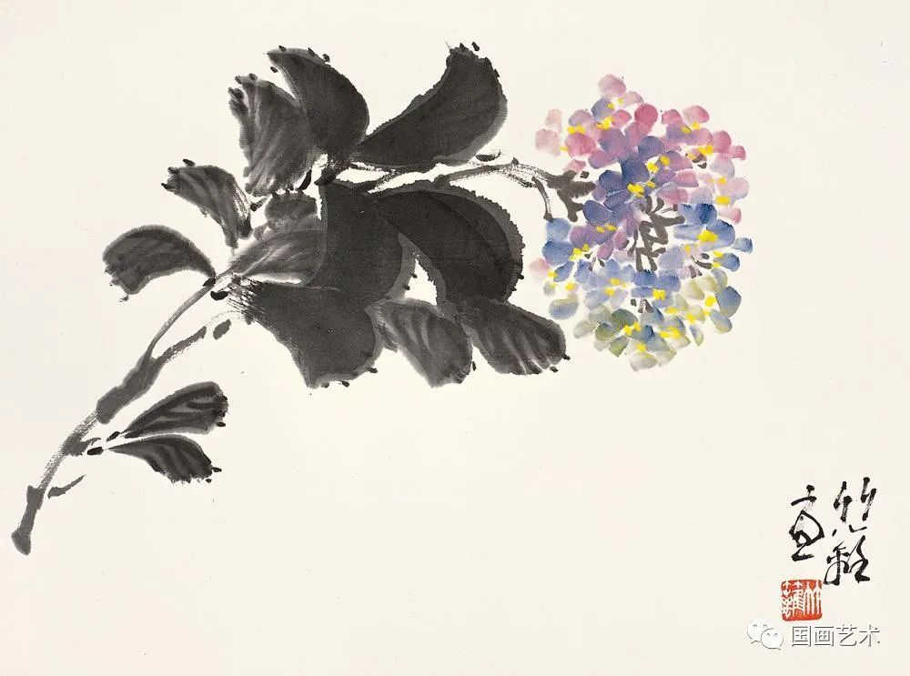《孙竹篱辛酉百开册》126开,又名《孙竹篱花鸟百开册》,创作于1981年,虽然不是画谱,但是可以作为画谱来看待。总计126开,没有散失,是完整的一部册页。绘画题材极为丰富,花卉类包含荷花、绣球花、辛夷花、菊花、牡丹花、桃花、秋葵花、月季花、攀枝花、紫藤花、山茶花、芙蓉花、梅花、水仙花、蔷薇花、芍药花、紫荆花、牵牛花。瓜果类包含枇杷、葡萄、南瓜、苹果、寿桃、丝瓜、冬瓜、葫芦、柿子、茨菇、石榴。禽鸟鱼虫类包含八哥、小鸟、蜜蜂、蜻蜓、翠鸟、猫头鹰、雄鹰、公鸡、鸭子。以及松树、黄叶、白菜、辣椒、昌蒲、陶壶、篱笆、竹竿、石头等。今天我们欣赏其中的第一部分: