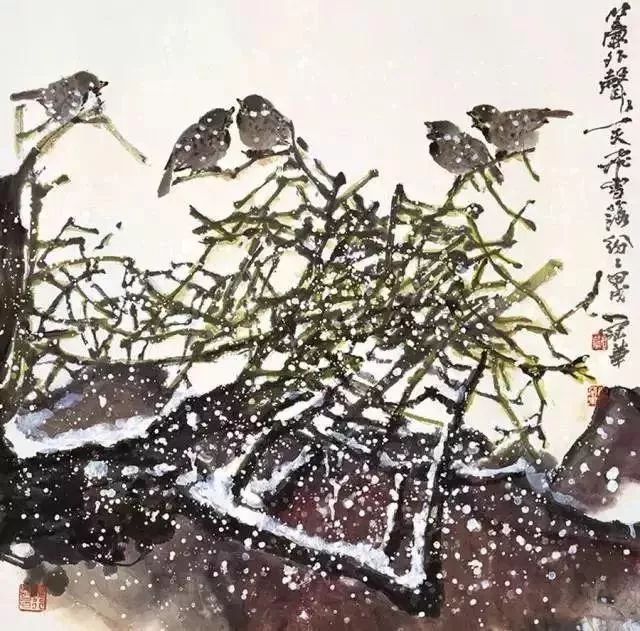 花鸟画的“疏密聚散、穿插交错”这八个字非常重要,贯穿在创作的全过程,稍一不慎,随即导致失败。必须时时留意才好。也可以说没有一幅画不接触到这个问题。